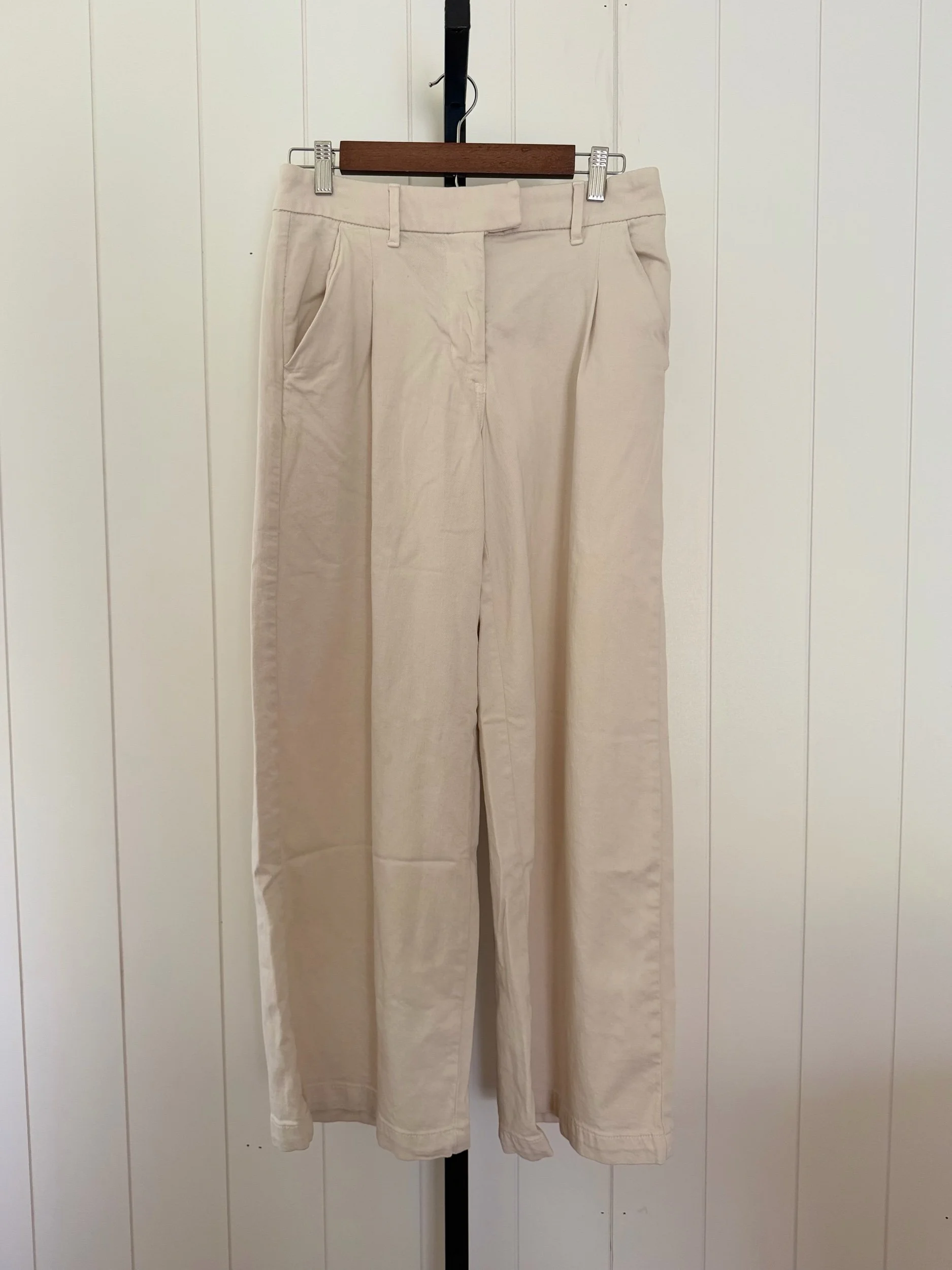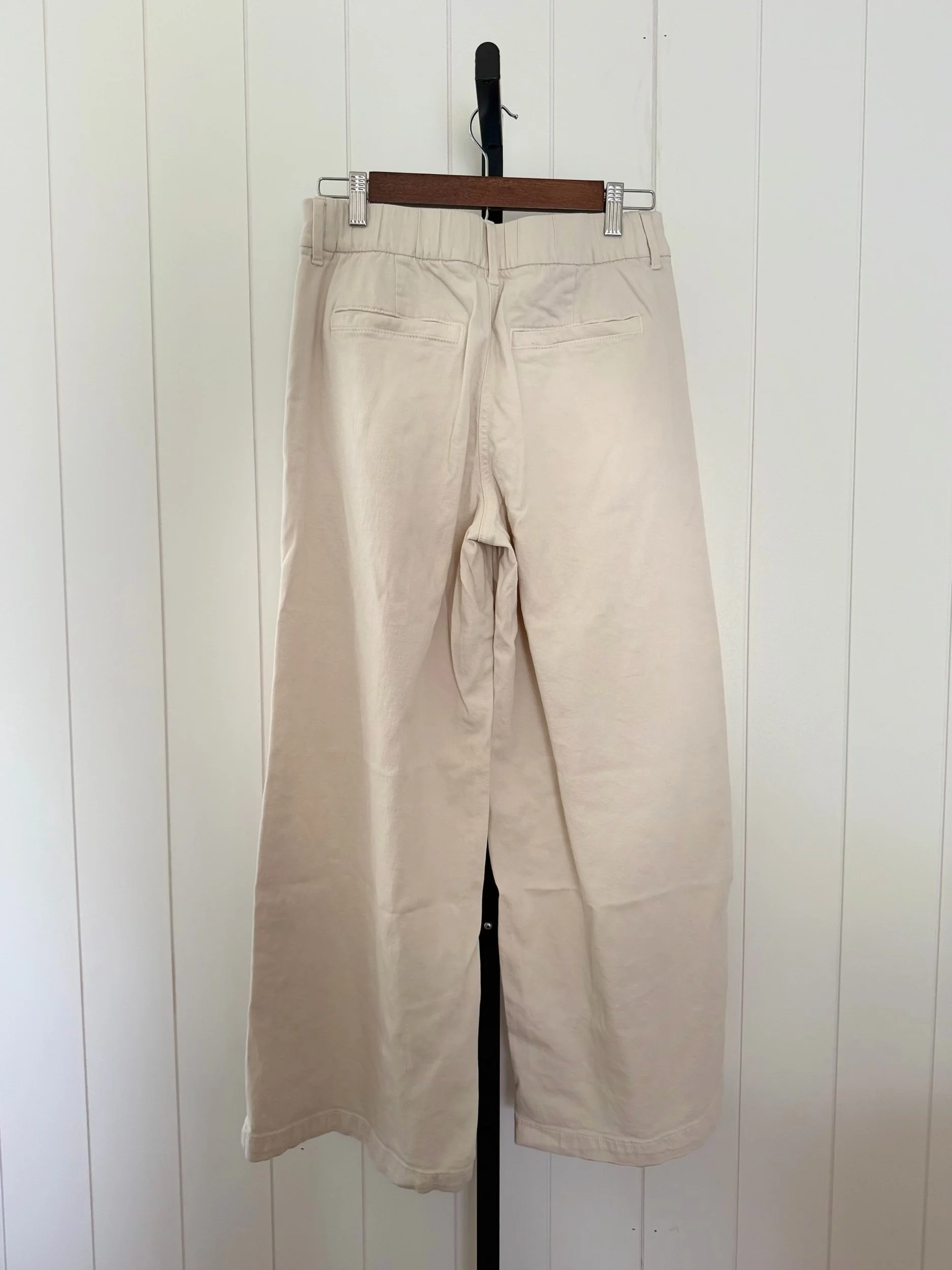 Image 1 of 4 Image 2 of 4 Image 3 of 4 Image 4 of 4 6 Short | American Eagle High-Waisted Wide Leg Trouser | Bone/Cream | Stretch Cotton $24.00 Add To Cart Added!
